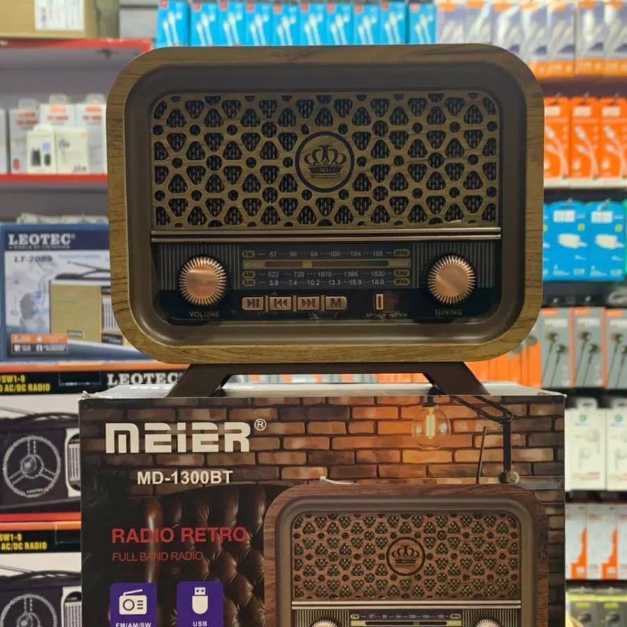 وصف المنتجراديو MEIER MD-1300BT بتصميم كلاسيكي "ريترو" يجمع بين وظائف FM/AM/SW الثلاثية وإمكانية تشغيل الوسائط المتعددة عبر USB، بطاقة TF، وAUX. يوفر هذا الراديو تجربة استماع مميزة مع لمسة عصرية، مما يجعله مثاليًا لعشاق الصوتيات بتصميمه الجذاب