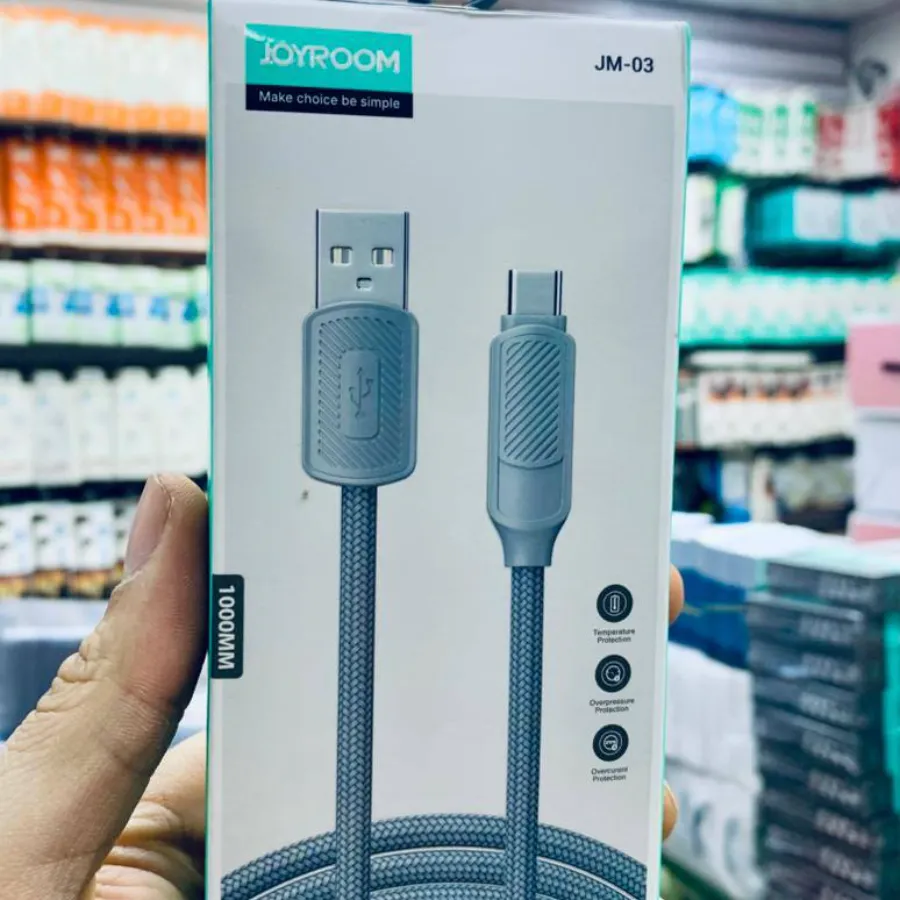 JOYROOM JM-03 هو كابل USB إلى Type-C مضفر من النايلون الدقيق، مصمم ليكون متينًا وقويًا للاستخدام اليومي. يوفر هذا الكابل بطول (2 متر) حلاً موثوقًا لشحن ونقل البيانات للأجهزة المزودة بمنفذ Type-C