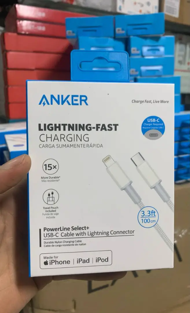 كابل Anker PowerLine Select+ هو كابل شحن سريع Lightning إلى USB-C مصمم خصيصًا لأجهزة iPhone وiPad وiPod، ويتميز بمتانة فائقة (أكثر 15 مرة مقاومة) بفضل جدائله المصنوعة من النايلون. يوفر هذا الكابل بطول 3.3 قدم (100 سم) شحنًا سريعًا وموثوقًا به